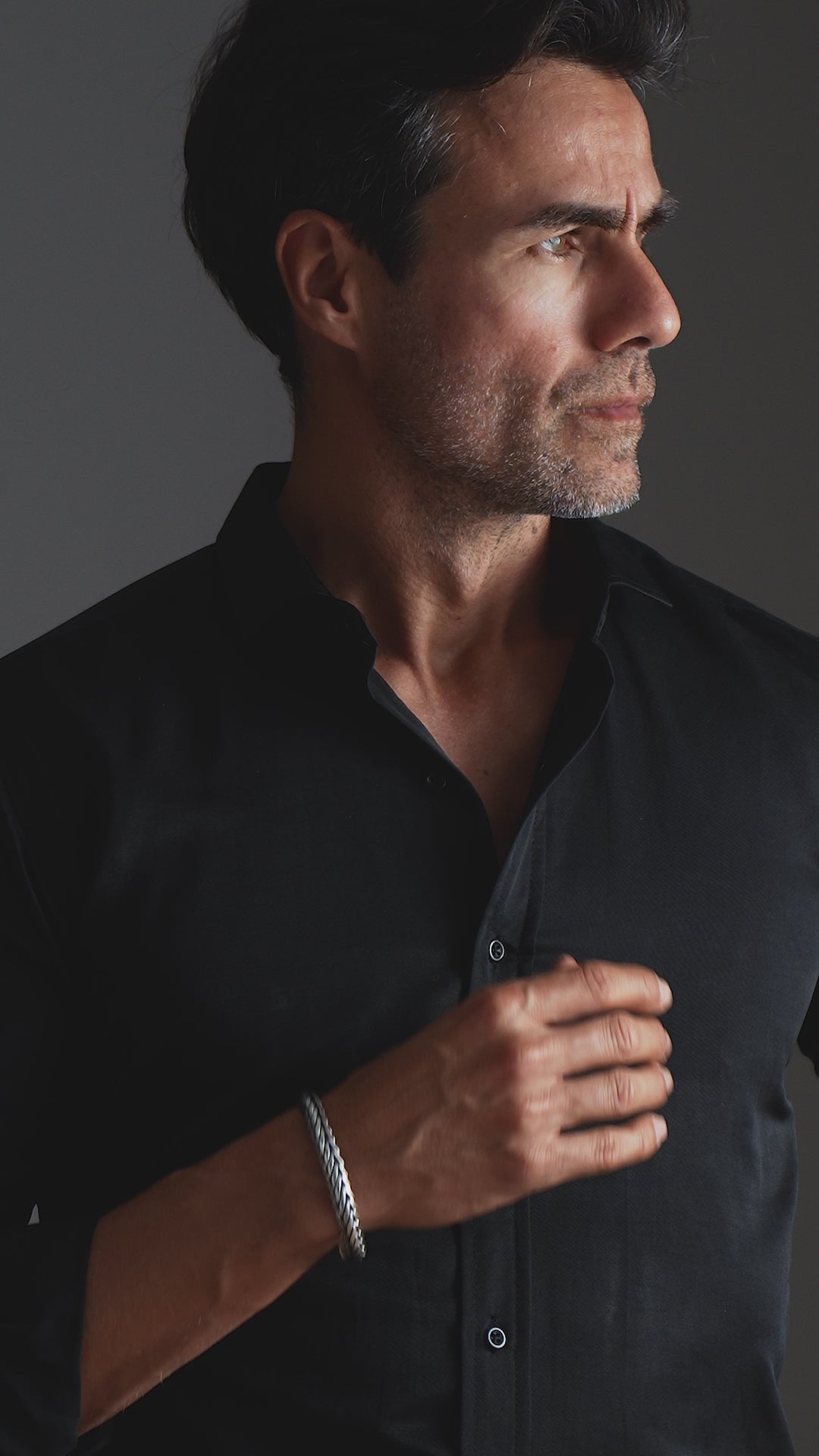 Bold by nature, not by effort. The Lesi Bracelet is handcrafted by master silversmiths in 925 sterling silver, with a wide braided structure that sits heavy on the wrist and demands a second look. A men's silver bracelet for those who don't just wear jewelry — they own it.